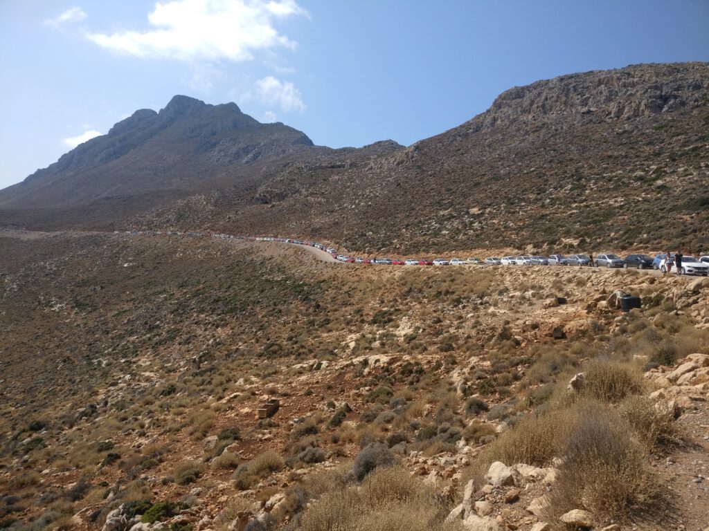 Während unseres Aufenthalts in Chania haben wir einen Tagesausflug zur berühmten Lagune von Balos gemacht. Mit dem Mietwagen braucht man etwa 1,5 Stunden bis zum Parkplatz. Die letzte Strecke führt über eine holprige Schotterstraße, auf der man wirklich langsam fahren muss, aber mit einem normalen Mietwagen ist es machbar.
